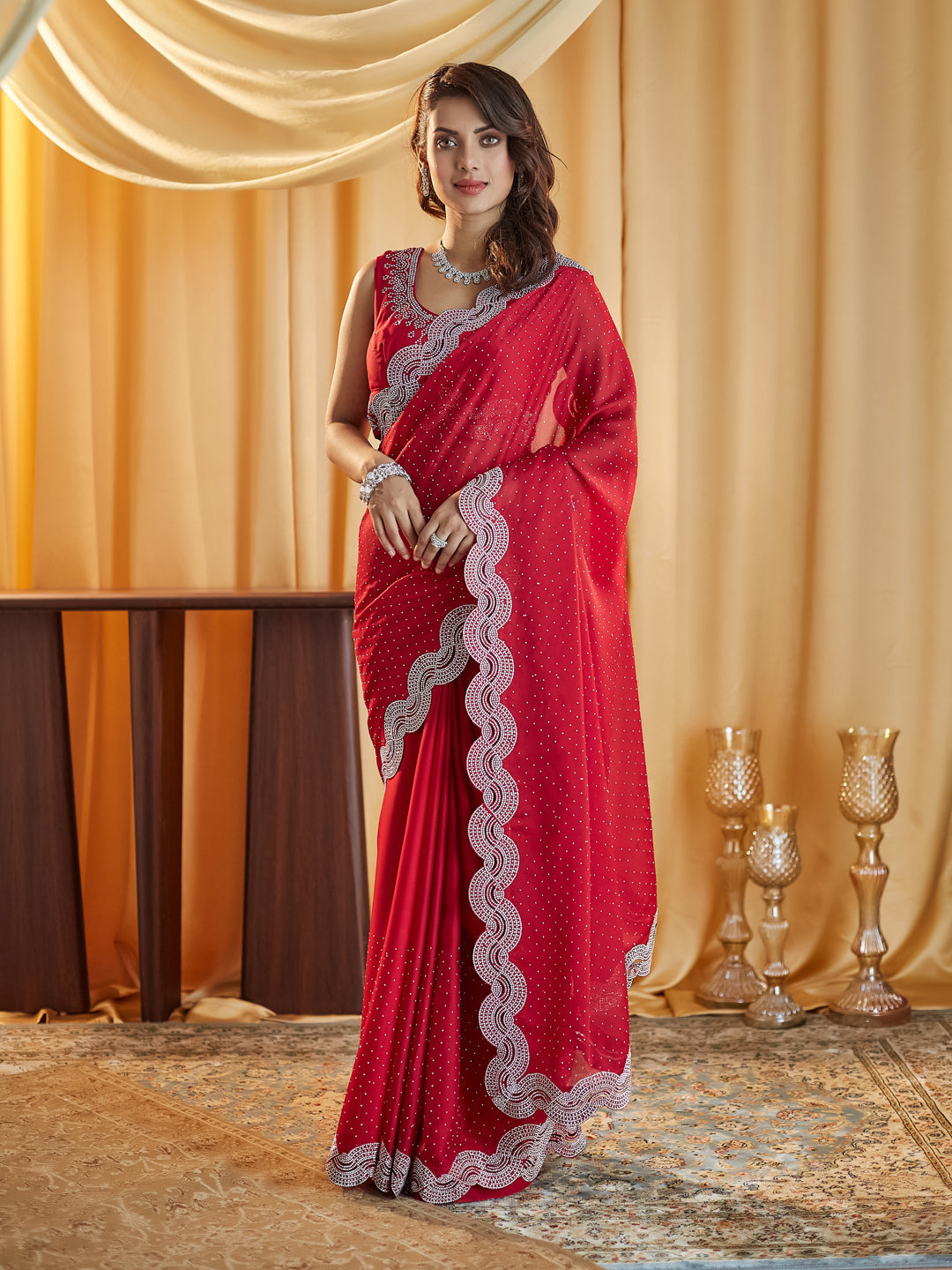 KASEE Women Cherry Embellished Beads and Stones Silk Blend Saree