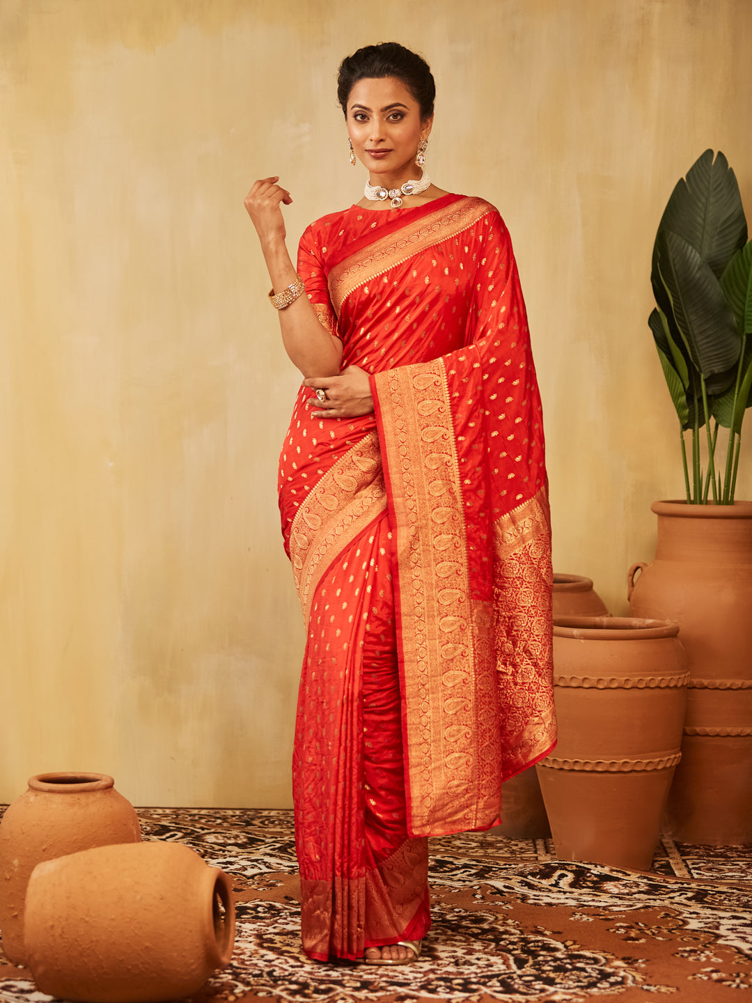 KASEE Women Banarasi Silk Saree with Gold Zari Buta Work