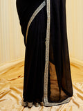 KASEE Women Black Saree in Silk Cotton with Zari Embroidered Border
