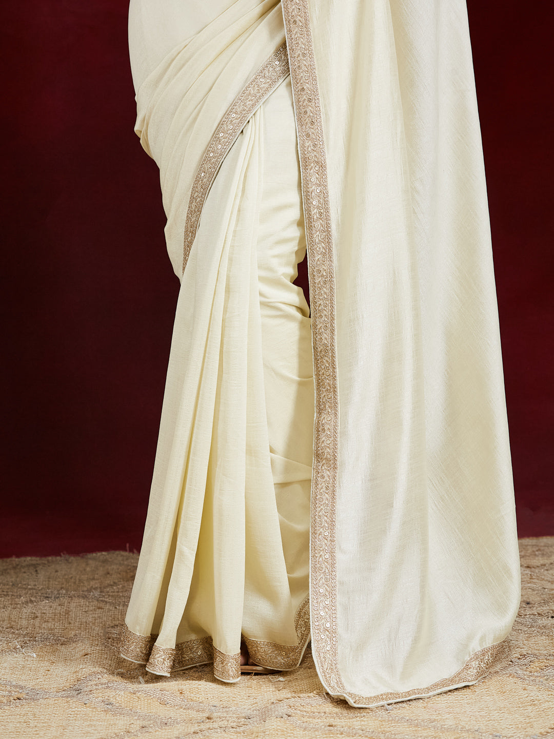 Exude effortless elegance with this serene cream saree crafted in a silk cotton blend fabric, perfect for both day and evening occasions. The simplicity of the solid body is beautifully elevated by a narrow yet refined zari embroidered border, featuring intricate patterns in beige-gold tones that catch the light subtly.This saree is a timeless addition to your ethnic wardrobe — ideal for minimalistic festive looks, intimate weddings, or even formal celebrations. The unstitched blouse fabric complements the saree with matching border detailing, allowing you to customize your look effortlessly.