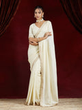 KASEE Women Cream Saree in Silk Cotton with Zari Embroidered Border