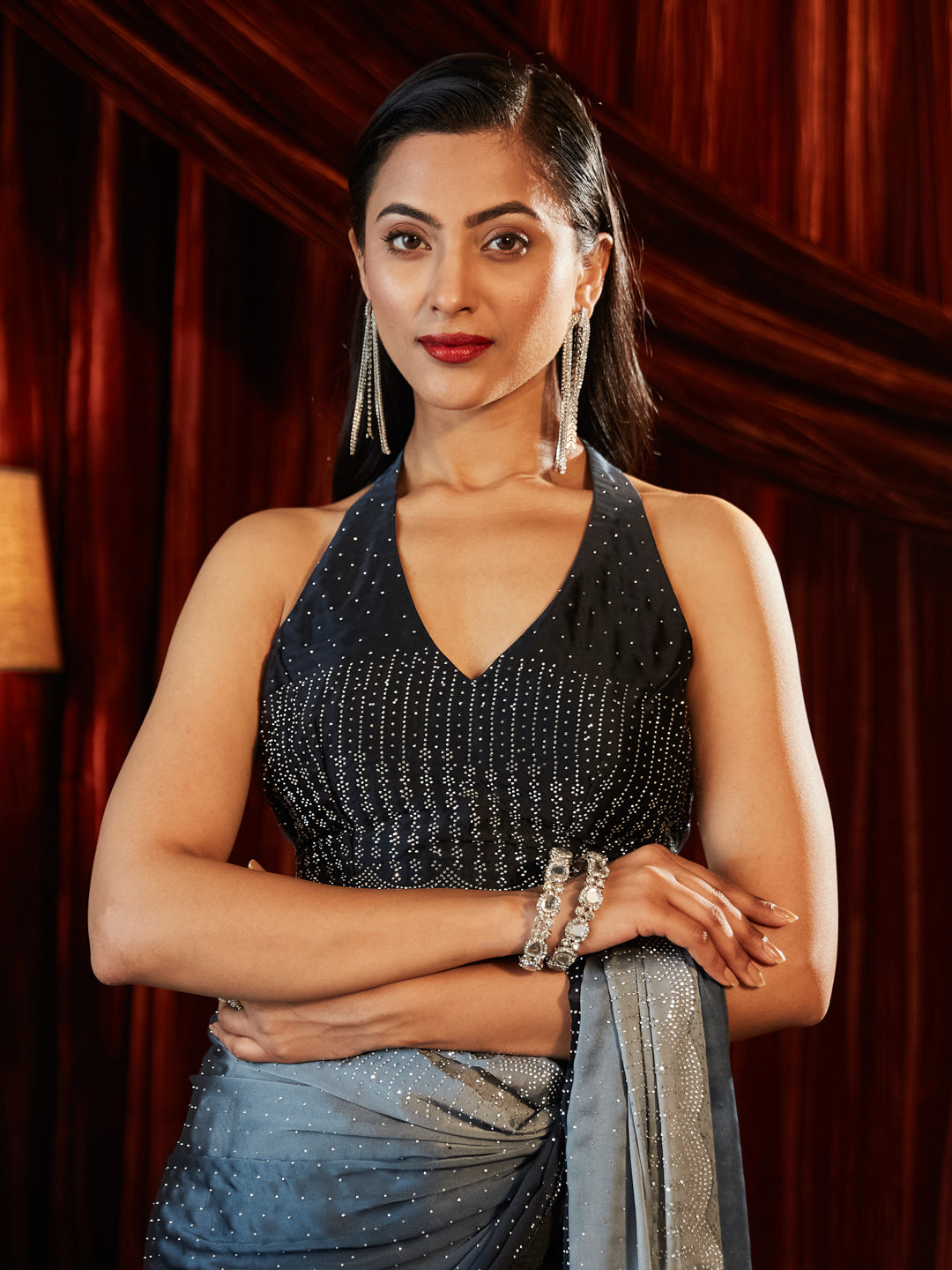 KASEE Women Ombre Beads and Stones Silk Blend Saree