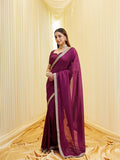 KASEE Women Wine Saree in Silk Cotton with Zari Embroidered Border