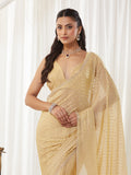 KASEE Women's Beige Embellished Silk Blend Saree with All-Over Sequin Buti Work