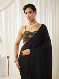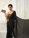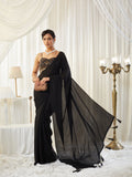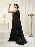 KASEE Women's Black Silk Saree with Tasselled Pallu