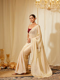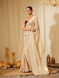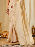 Kasee Women's Champagne Beige Silk Blend Saree with Sequin Embroidered Border
