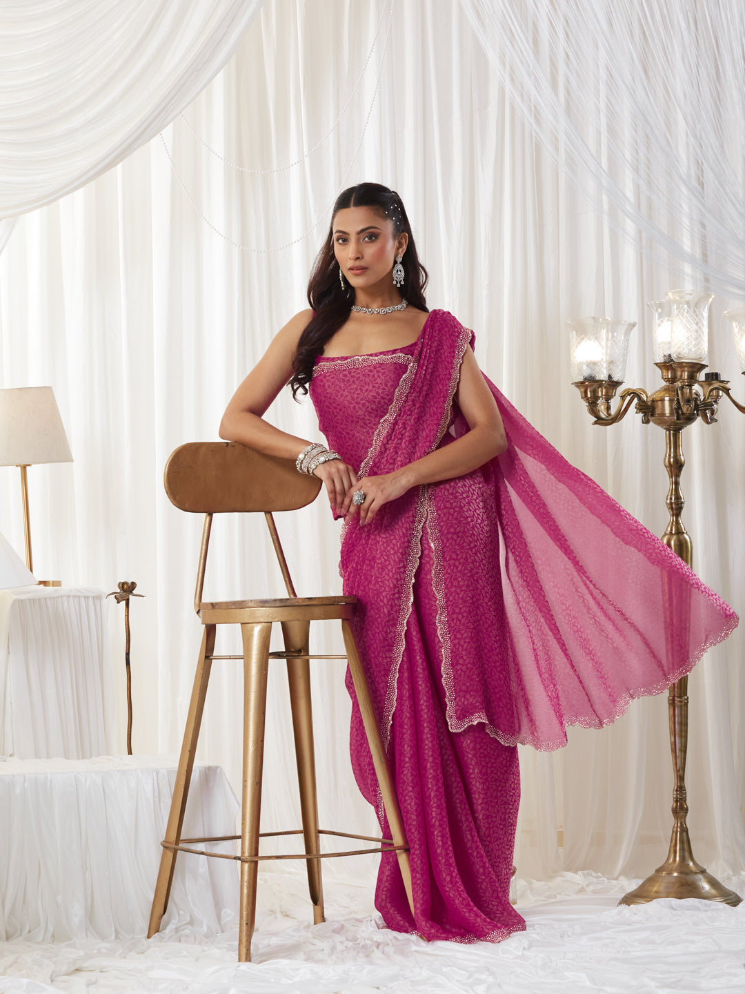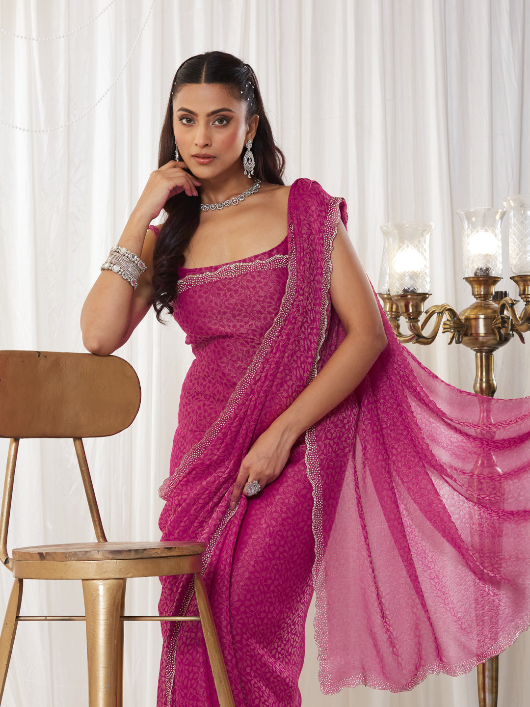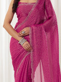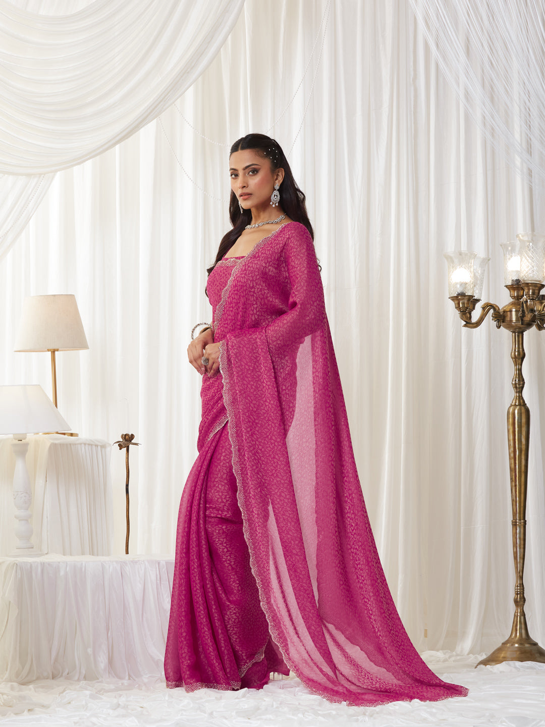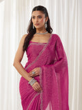 KASEE Women's Designer Rani Art Slik Saree with Shimmer-Detail Edges