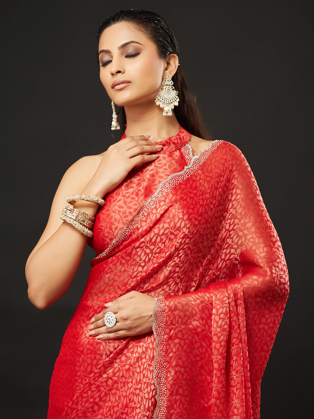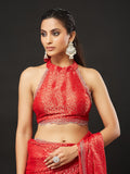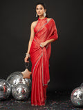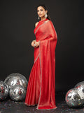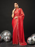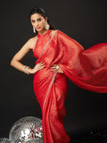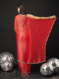 KASEE Women's Designer Red Art Slik Saree with Shimmer-Detail Edges