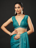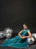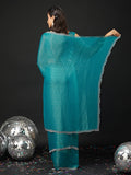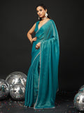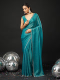 KASEE Women's Designer Teal Art Slik Saree with Shimmer-Detail Edges