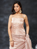 KASEE Women's Elegant Pink Saree with Shimmer Finish & Solid Draped Design
