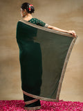 KASEE Women's Green Silk Blend Saree with Golden Zari Embroidered Border
