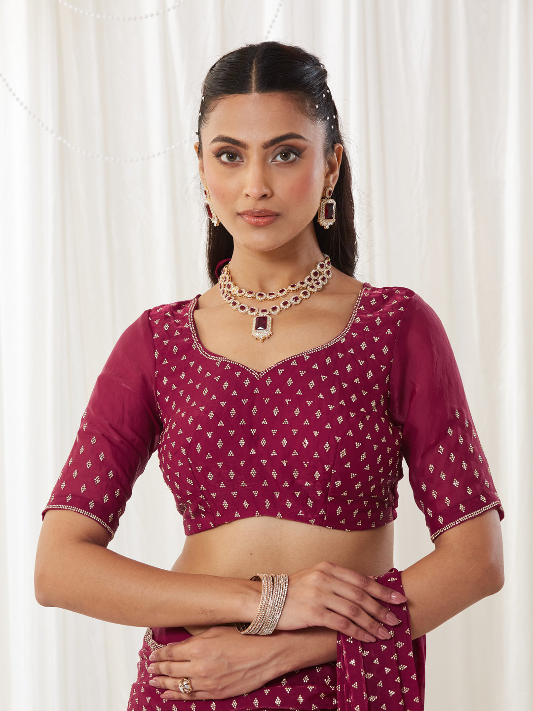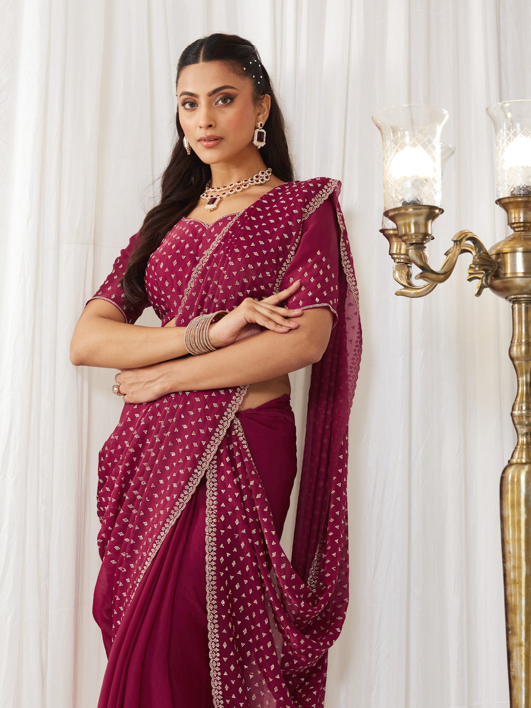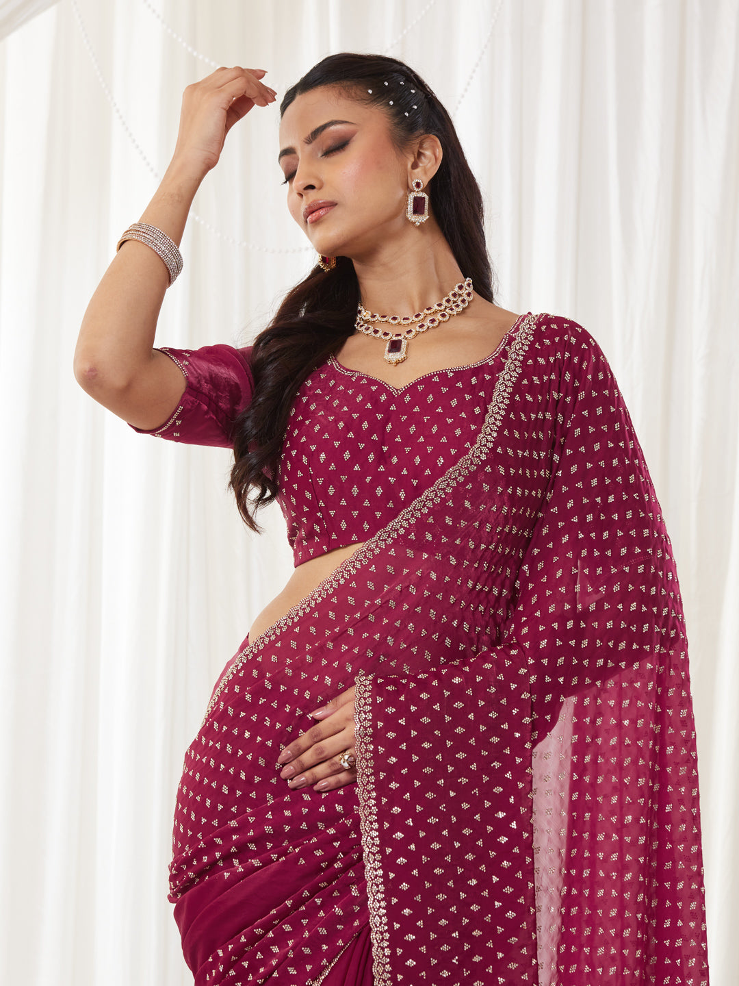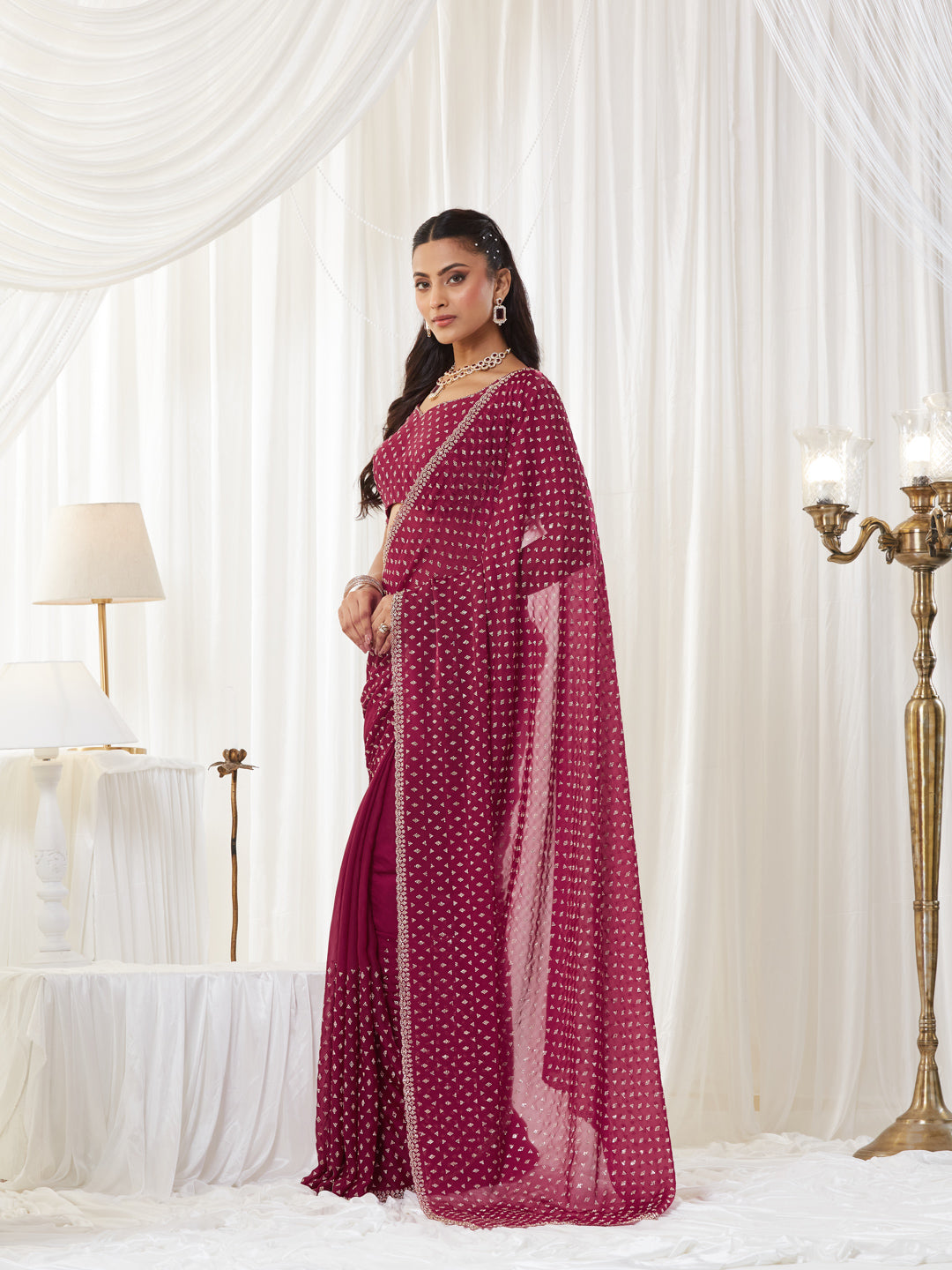 KASEE Women's Maroon Embellished Silk Blend Saree with All-Over Sequin Buti Work