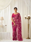 KASEE Women's Maroon Poly Silk Saree with Silver Metallic Floral Embroidery & Scalloped Stone Border