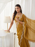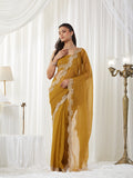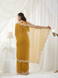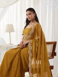 KASEE Women's Mustard Embroidered Saree with Heavy Thread Work Border