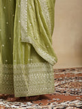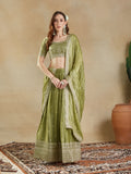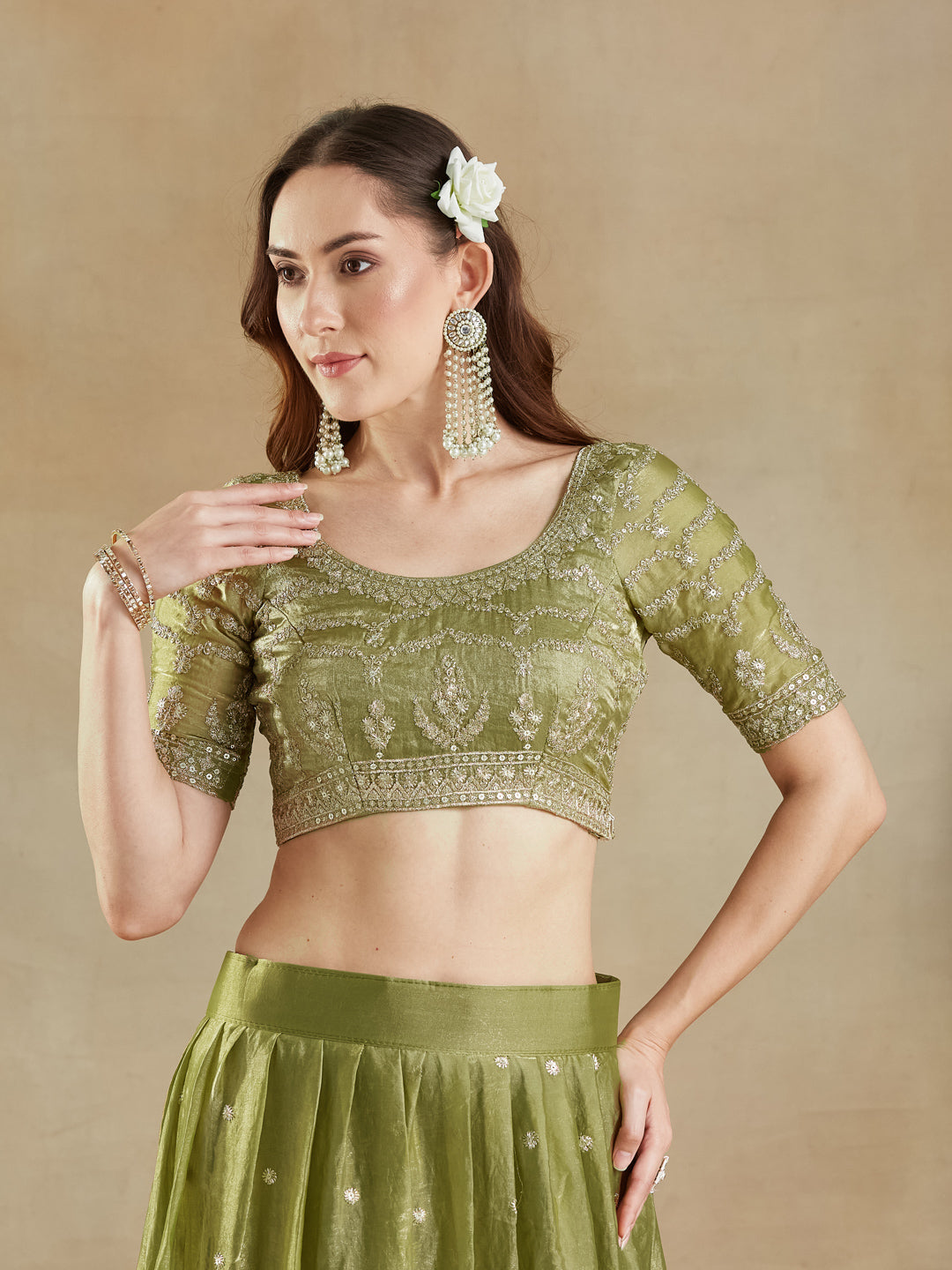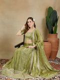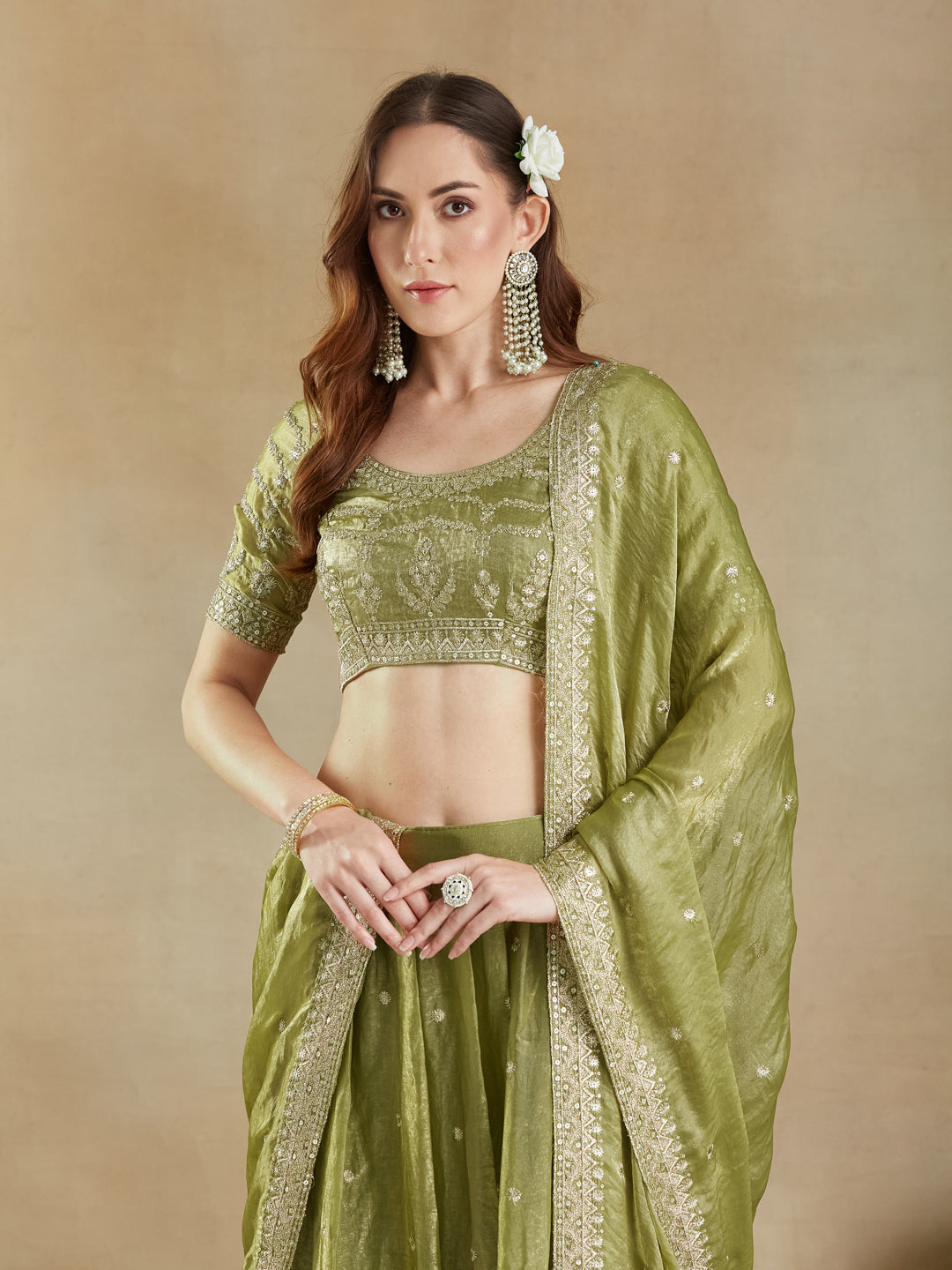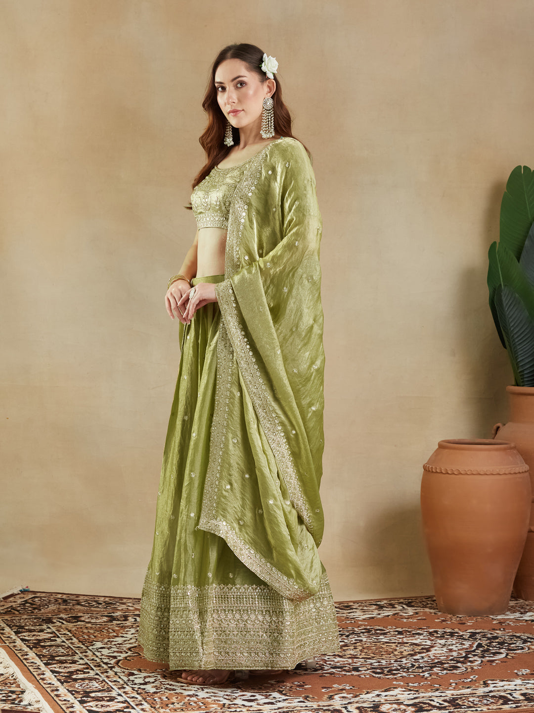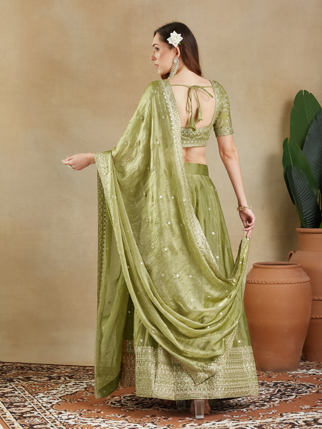KASEE Women's Olive Green Silk Blend Embroidered Lehenga Choli Set with Heavy Zari & Sequin Work