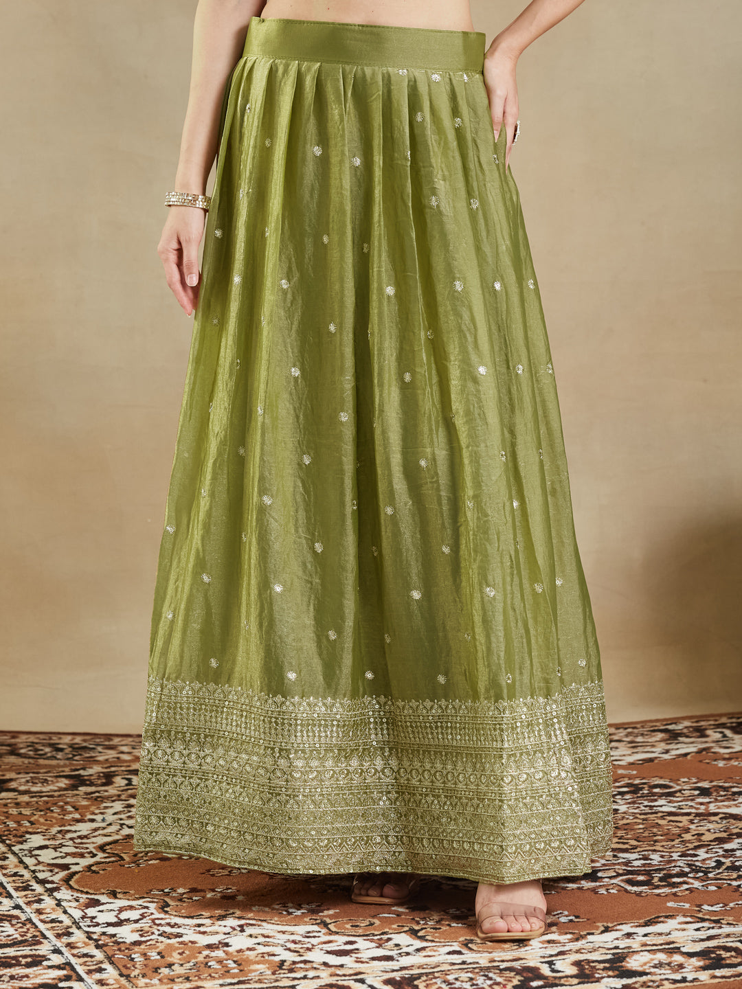 Step into timeless elegance with this olive green embroidered lehenga choli set, crafted from lustrous silk blend fabric. The intricate thread and sequin work adds a regal charm, while the lightweight dupatta with delicate motifs completes the ensemble. Perfect for weddings, festive occasions, or special celebrations, this outfit blends traditional artistry with modern grace. Pair this lehenga choli with statement jhumkas, a sleek bun or soft curls, and embellished heels for a graceful festive look.