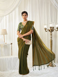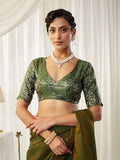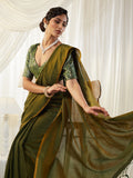 KASEE Women's Olive Green Silk Cotton Saree with Contrasting Blouse