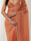 KASEE Women's Peach Embellished Silk Blend Saree with All-Over Sequin Buti Work