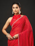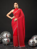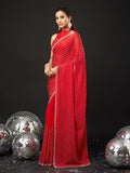 KASEE Women's Red Embellished Silk Blend Saree with All-Over Sequin Buti Work