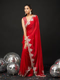 KASEE Women's Red Embroidered Saree with Heavy Silver Thread Work Border