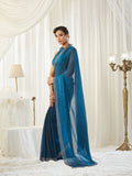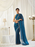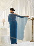 Make a grand entrance with this stunning Royal Blue Embellished Silk Blend Saree, crafted to radiate elegance and modern sophistication. The saree features all-over stone detailing scattered delicately across the sheer silk blend fabric, creating a soft shimmer that elevates your festive or evening look effortlessly.The highlight of the saree is its intricately embellished border, designed with precision to add structure, definition, and a luxurious finish. The border? geometric shimmer beautifully contrasts with the airy silk blend drape, making this piece ideal for receptions, cocktail parties, and upscale festive events.The pleated section of the saree features a deeper shade with denser stone work, adding dimension and richness to the overall silhouette. The flowy pallu maintains a sophisticated translucency, enhancing the saree? charm with elegant movement.Paired with a designer halter-style pleated blouse, this ensemble marries contemporary design with classic glam. The structured neckline adds a bold, fashion-forward touch, making the outfit perfect for those who love a modern twist on traditional attire.