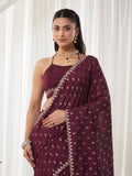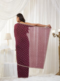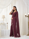 KASEE Women's Wine Embroidered Silk Cotton Saree with Paisley Motifs