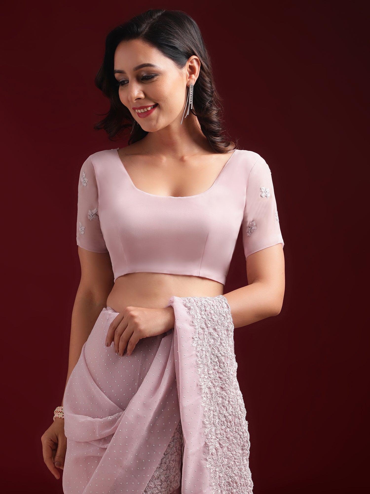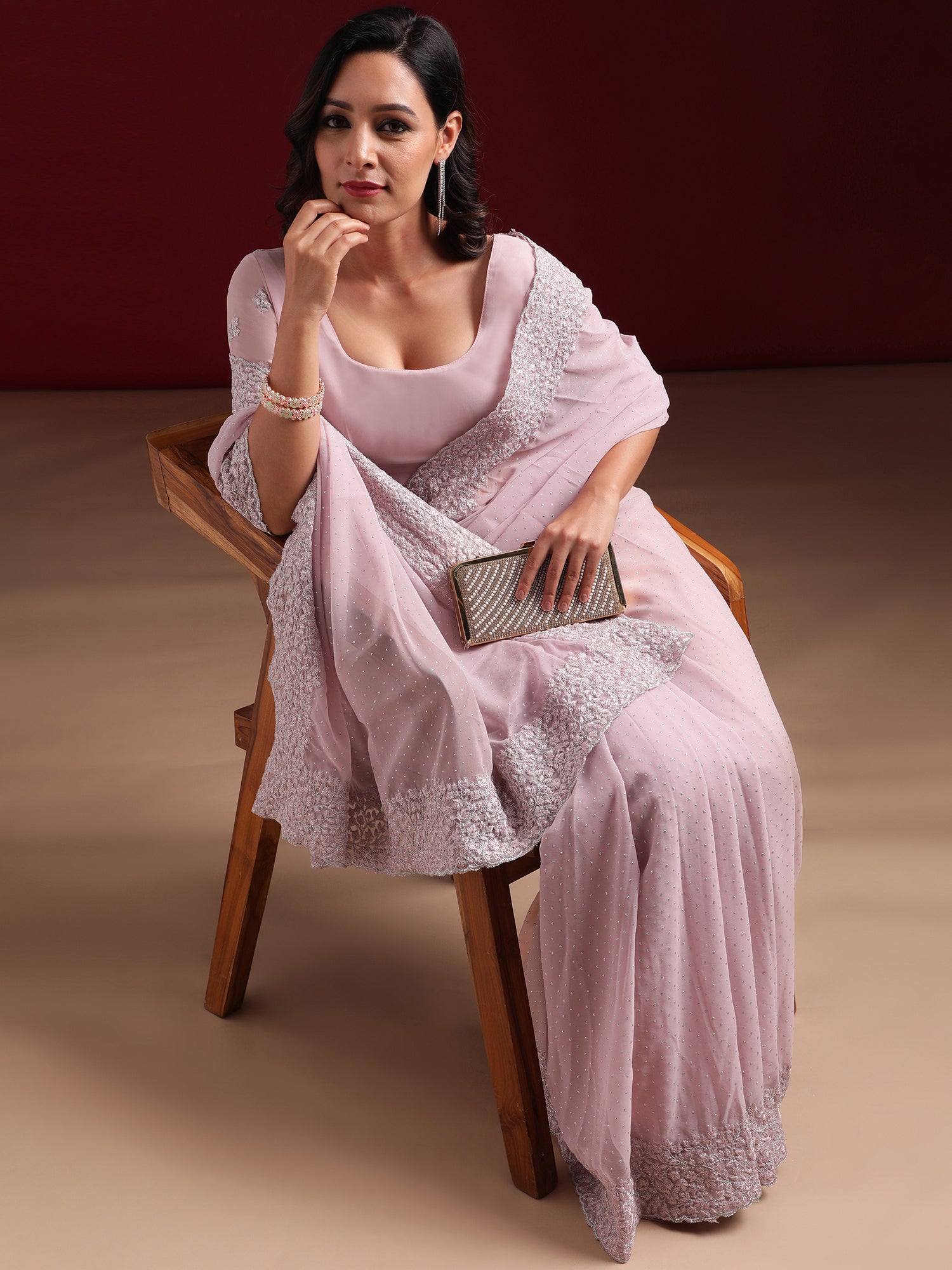 KASEE Women Lavender Beads and Embroidered work georgette Saree